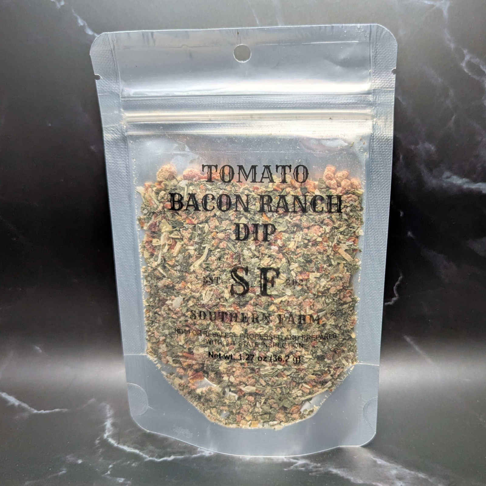 Discover the perfect blend of rich flavors with our Tomato Bacon Ranch Dip! This delicious dip combines creamy ranch made with tomatoes and maple bac’n pieces to create a savory and irresistible snack or dressing. Each pouch contains 2 mixings.